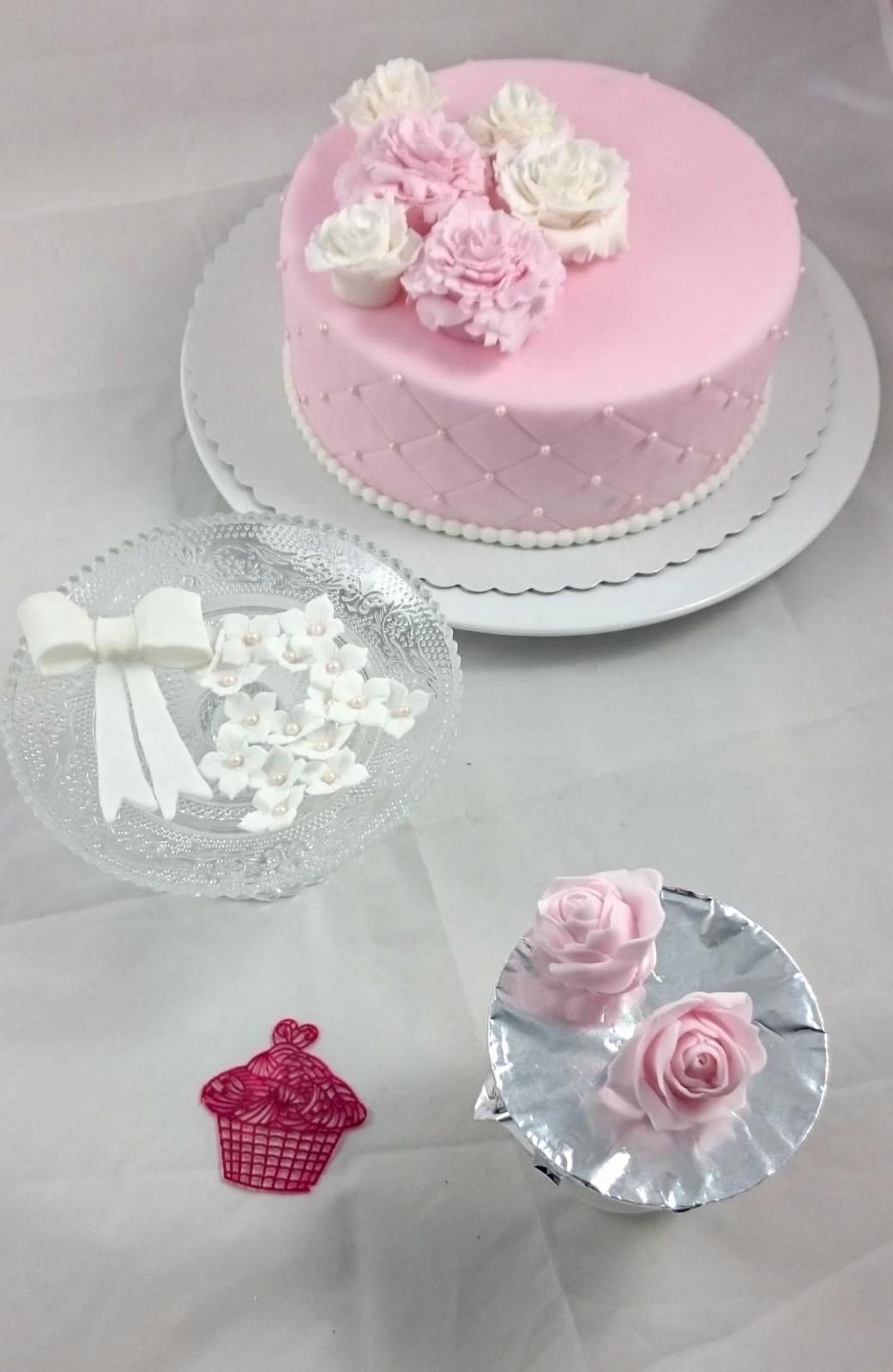 In diesem Kurs wurden uns auch zwei Techniken zur Rosenherstellung gezeigt. Die eine Technik kannte ich schon, da ich sie auf der Kommunionstorte meiner Nichte schon verwendet habe.